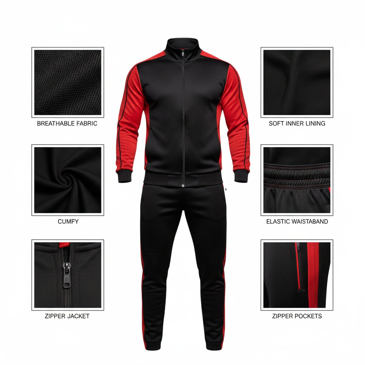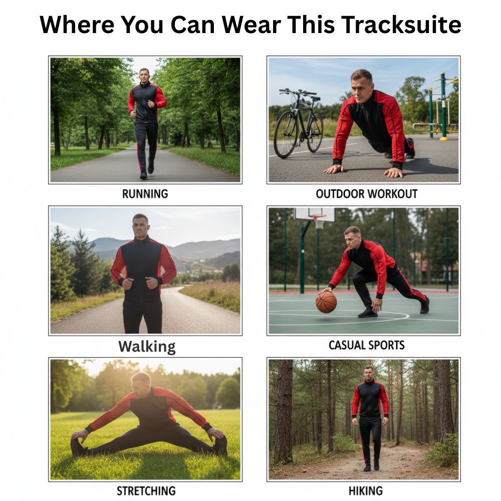 Upgrade your workout wardrobe with the UltraFlex Men’s Tracksuit, designed for athletes, fitness enthusiasts, and casual wearers. Crafted with premium polyester and spandex, this tracksuit ensures maximum flexibility, breathability, and comfort during every activity. Perfect for running, jogging, gym workouts, cycling, outdoor fitness, and casual streetwear, it combines performance with style