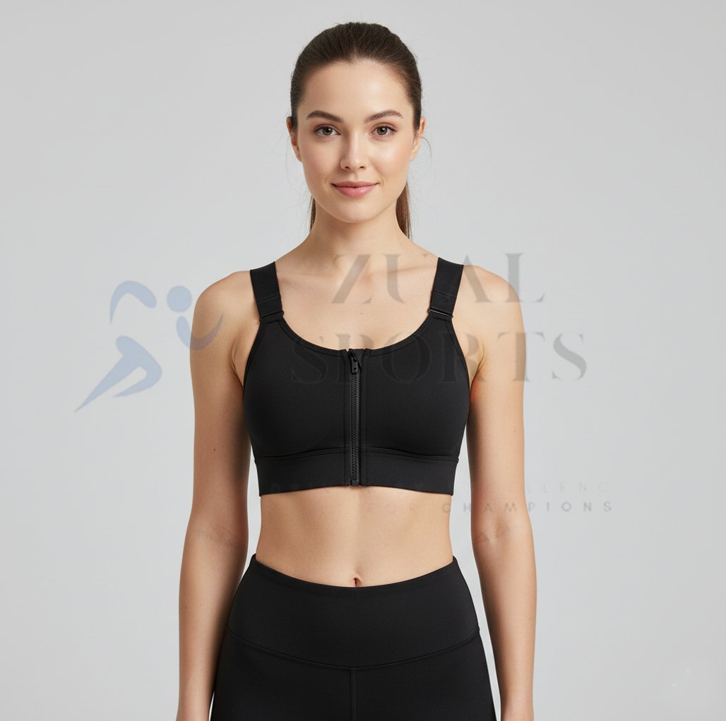 Upgrade your workout wardrobe with this high support front zipper sports bra designed for active women who want comfort, style, and performance. The breathable fabric and adjustable straps ensure a secure and comfortable fit during any activity.